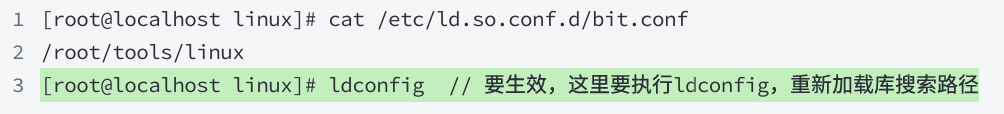 • 采用ldconfig方案:配置/etc/ld.so.conf.d/目录后执行ldconfig命令更新库缓存