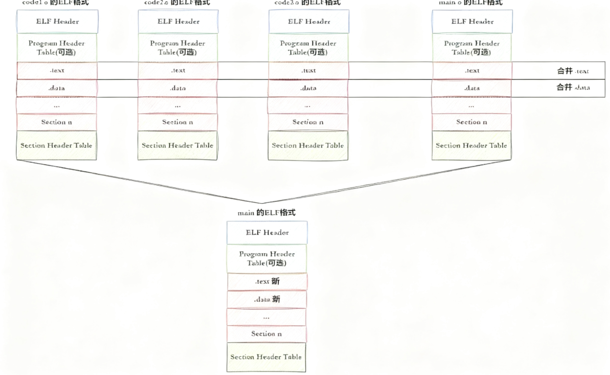 这种合并方式在ELF文件生成时就已确定,具体的合并规则被记录在ELF的程序头表(Program Header Table)中。(本文就浅显讲解ELF,不过多讲解了)