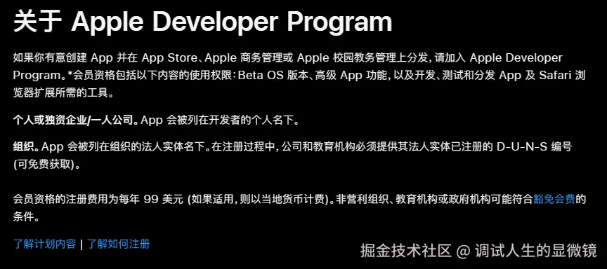 个人账号 | 99 美元/年 | 适合个人开发者 |