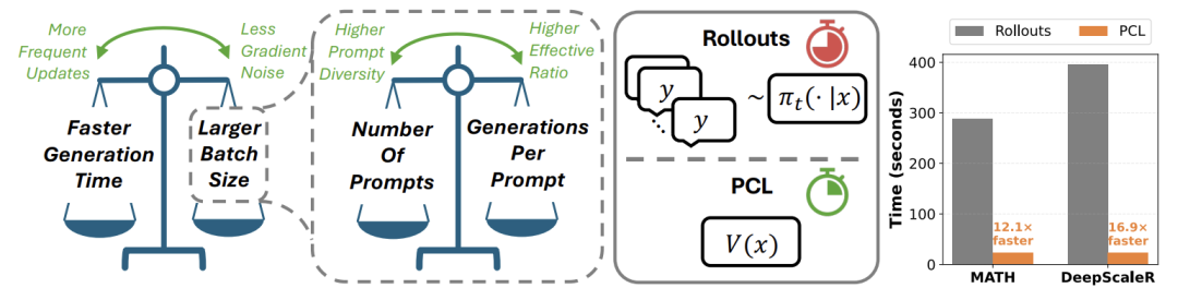 近年来,大型语言模型(LLM)在数学推理、代码生成等复杂任务上取得了显著进展,其中强化学习(RL)的后训练(Post-Training)扮演了关键角色。然而,RL训练过程对数据批处理(batching)和提示(prompt)选择策略极为敏感,传统方法通常依赖高成本的生成采样(rollouts)或历史奖励字典,导致训练效率低下且容易偏离当前策略。