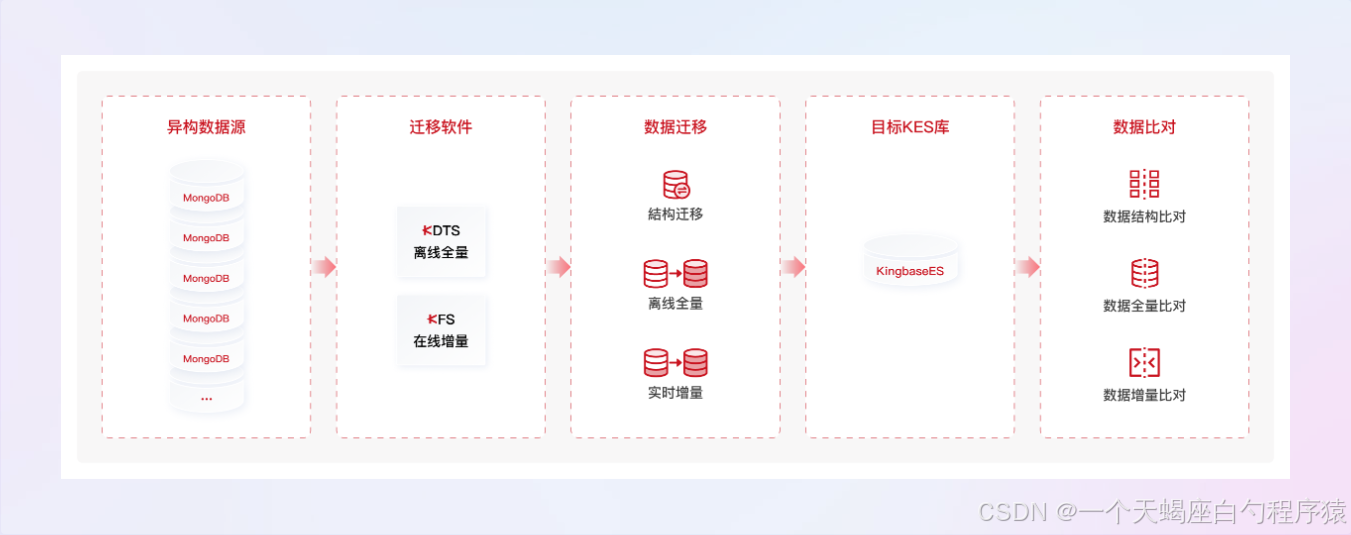 金仓数据库提供覆盖全量离线、增量在线迁移及数据比对的全流程自动化配套工具,有效减少迁移工作量。 金仓异构迁移软件KDTS提供存量数据迁移能力,基于"流水线"作业模式可以将原MongoDB数据库中的存量数据进行高速数据迁移。