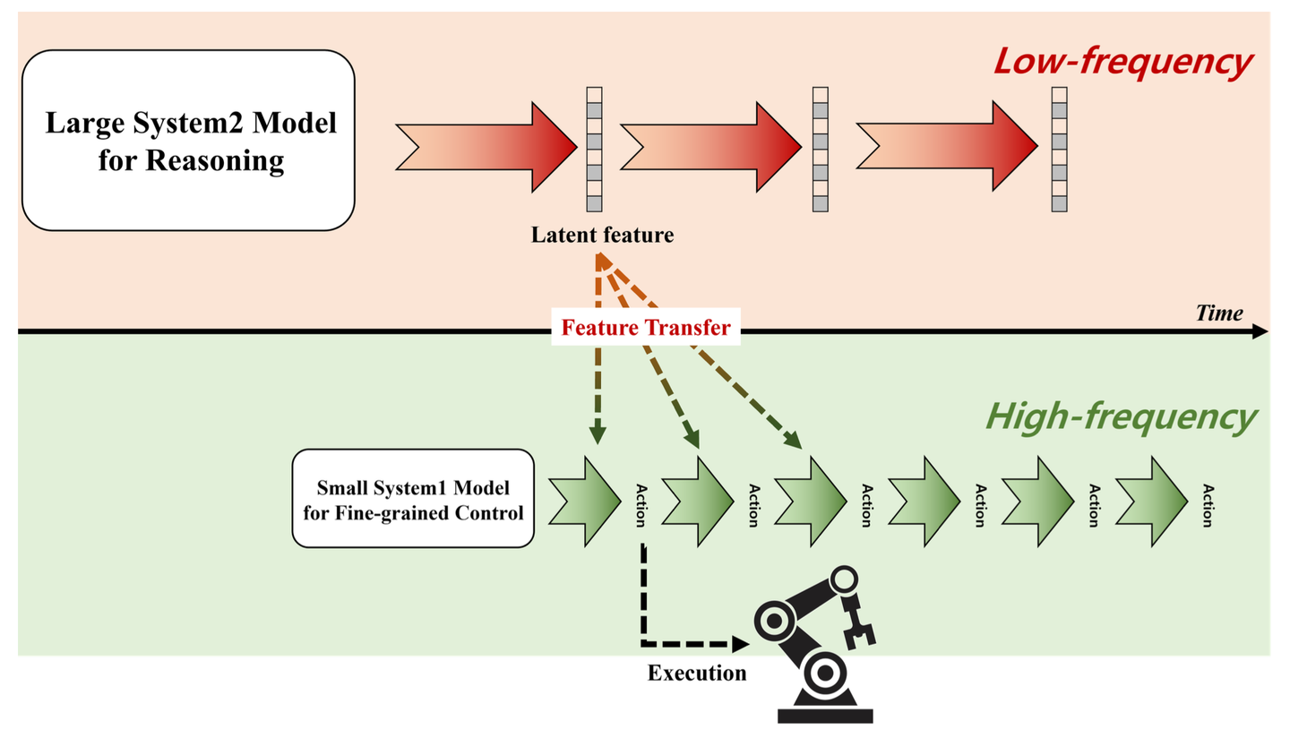 随着技术发展,机器人领域出现了快慢双系统架构,这与自动驾驶领域的发展趋势相似。韩国ETRI和Figure.AI的Helix都采用了双系统设计,结合了VLM的强大理解能力和轻量级模型的快速响应能力。