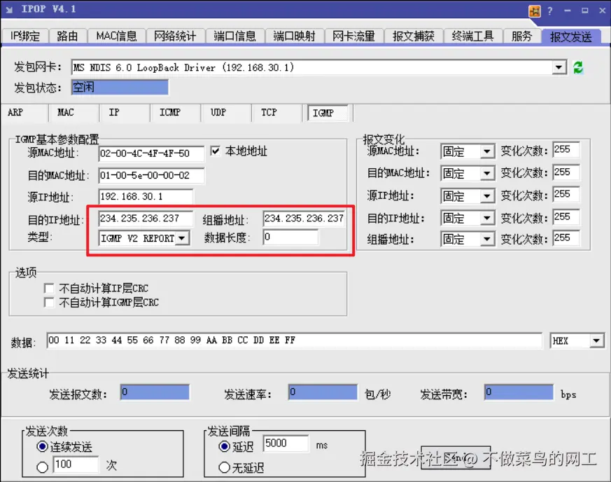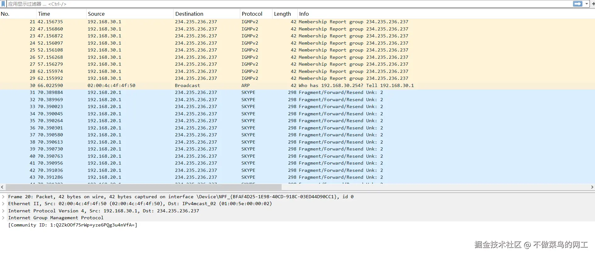 并且通过抓包 我们也发现了大量的测试组播包 到此实验成功