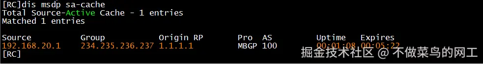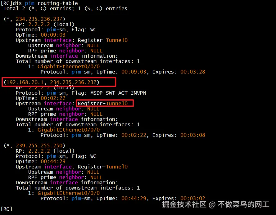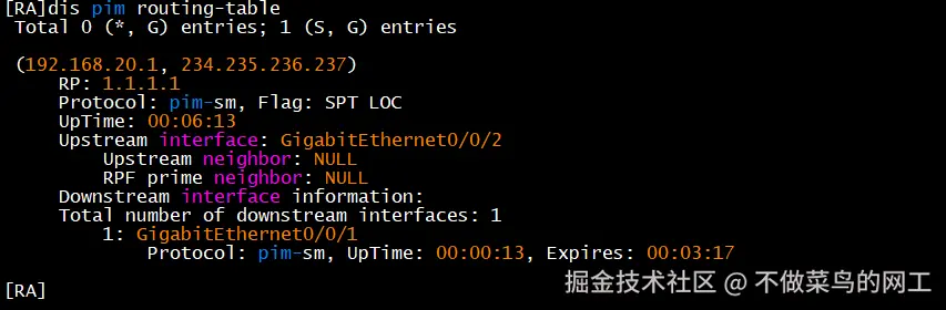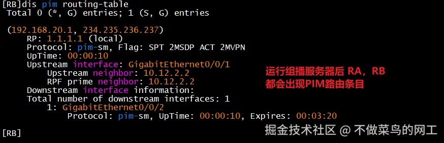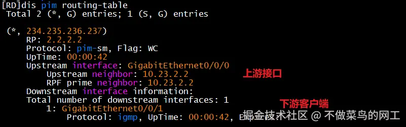并且生成完成的PIM路由 即上游接口以及组播服务器地址
