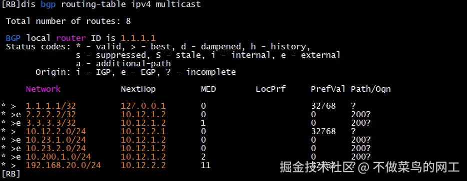 全区域路由配置PIM以及组播路由功能 PIM采用SM形式 配置RB,RC,RE为各PIM区域RP PIM区域接口配置bsr服务边界 RB-RC建立MBGP组播邻居
