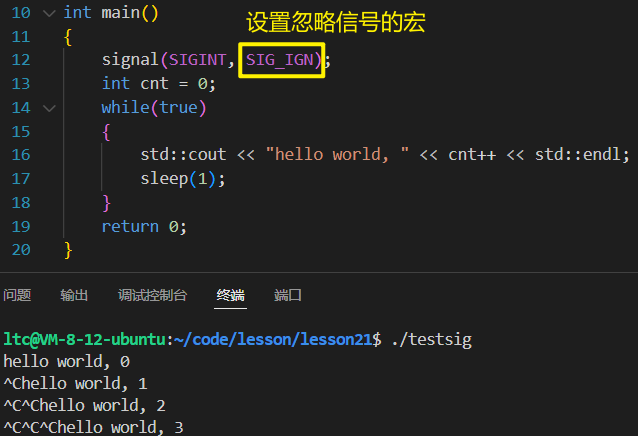 cpp1. 一个指向用户定义的信号处理函数的指针 2. SIG_IGN:表示忽略该信号 3. SIG_DFL:表示恢复对信号的系统默认处理
