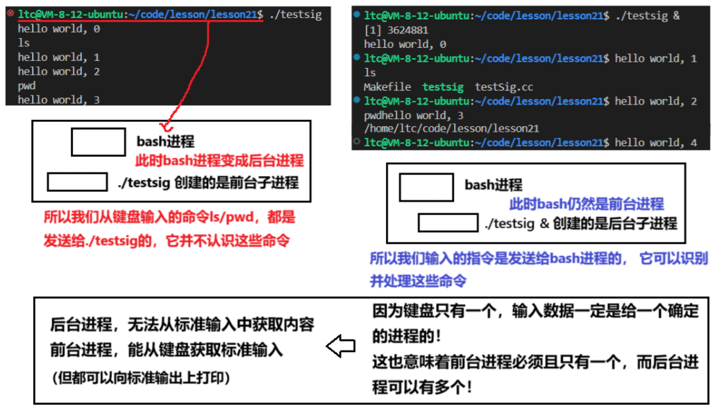 总结:前台进程的本质,就是要从键盘获取数据的!