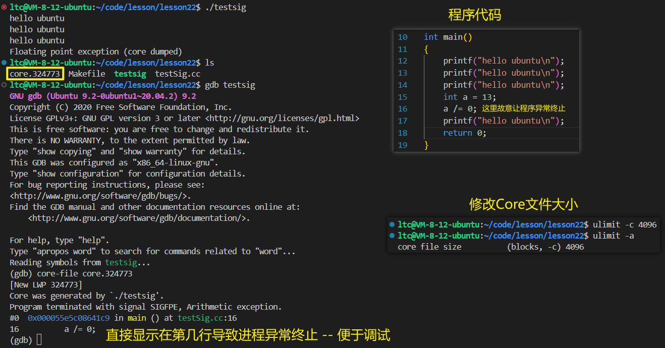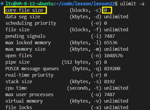 ⽂件最⼤为 4096KB ->$ ulimit -c 4096