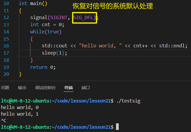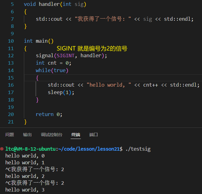 ⽽产⽣⼀个信号,也就是说该进程的⽤⼾空间代码执⾏到任何地⽅都有可能收到SIGINT