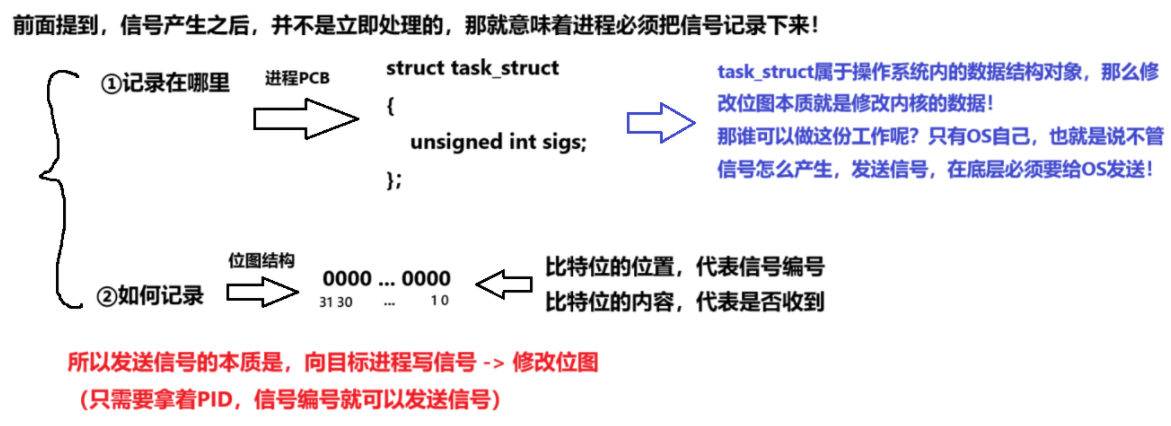 人能识别信号,是提前被"教育"过的,同样进程也如此,OS程序员设计的进程,进程早已经内置了对于信号的识别和处理方式