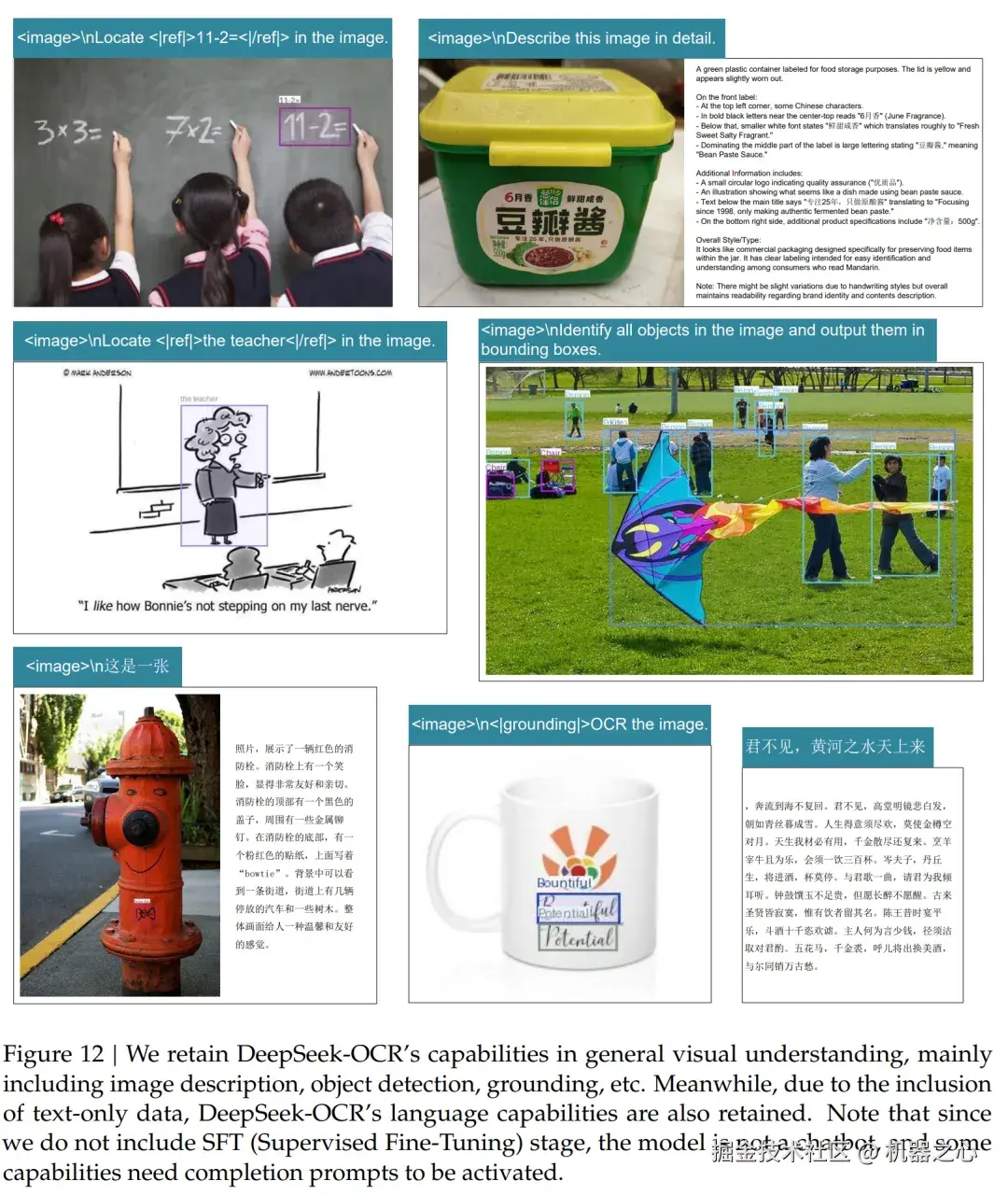 通用视觉理解:此外,DeepSeek-OCR 还具备一定程度的通用图像理解能力,相关的可视化结果如图 12 所示。