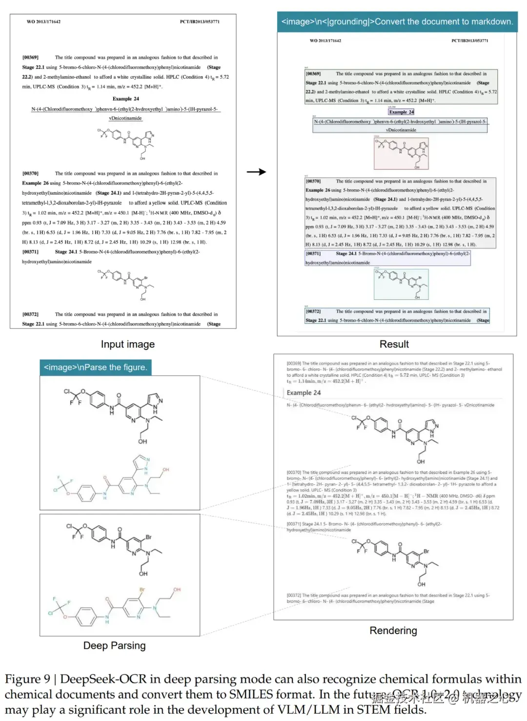 图 7、图 8、图 9、图 10 所示,模型能够对图表、几何图形、化学公式,甚至自然图像进行深度解析,只需使用一个统一的提示词(prompt)即可完成。
