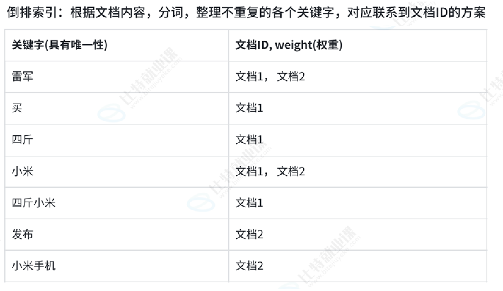 文档2: 雷军发布了小米手机正排索引:文档id 与 正文 映射关系