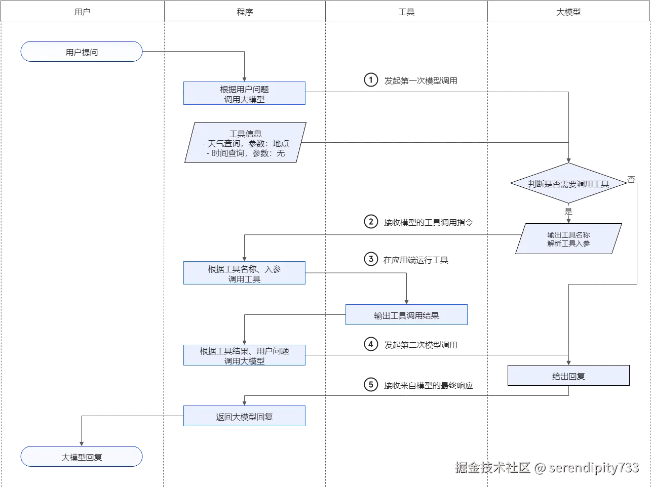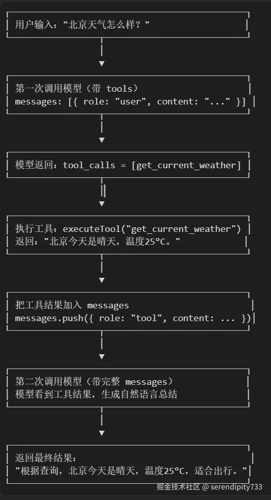 - 处理返回结果:外部函数返回数据后,AI需要理解结果并转化为用户能懂的自然语言(而不是直接丢出API原始响应)