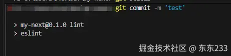 这时候我们更改一个文件,然后commit、可以看到eslint 命令正常执行了,只有eslint不报错才能正常提交
