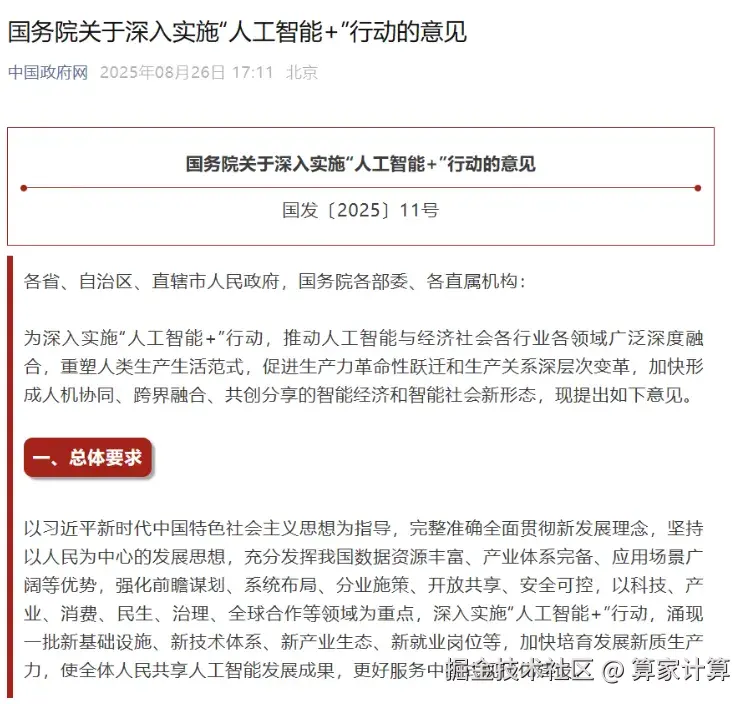 除此之外,政策支持为AI产业发展提供了强劲动力。2025年《政府工作报告》提出持续推进"人工智能+"行动,并于8月出台《国务院关于深入实施"人工智能+"行动的意见》,支持大模型广泛应用。