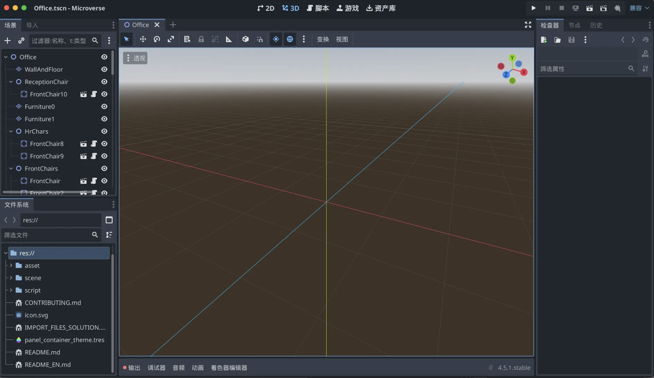 进去以后导入完是这样的,看起来什么都没有,但是点击右上角小三角运行起来就出来游戏界面了