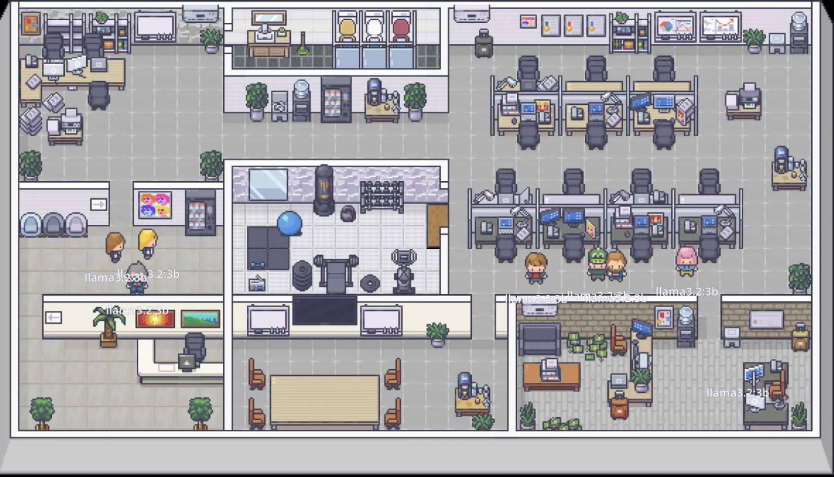 例如在这个小镇里,某个智能体可能会去咖啡馆,偶遇其他智能体,闲聊,后来一起组织一个聚会。这样的行为不是硬编码的,而是根据输入、记忆、推理机制产生的。