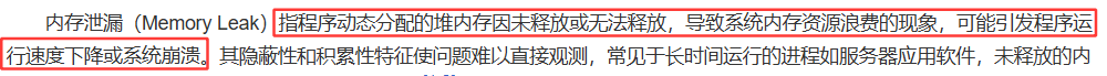 1.首先析构函数调用的次数不够,导致内存泄漏(内存泄漏不报错)。