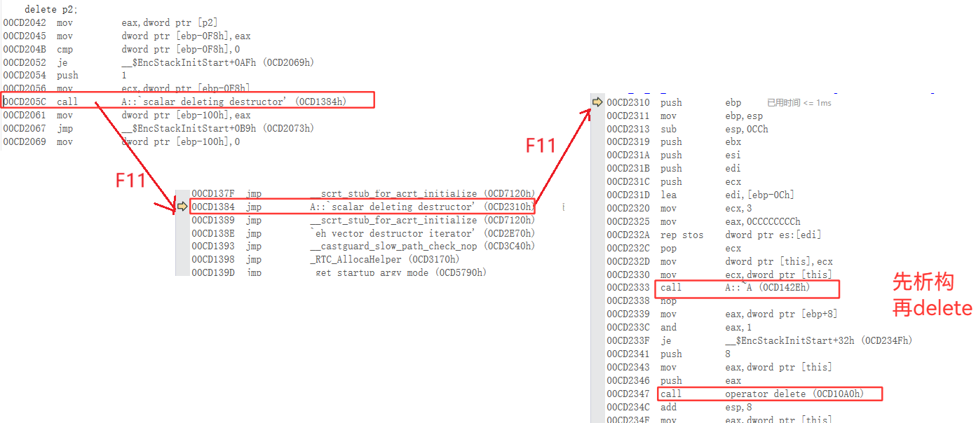 A类型没有显示的实现析构函数,默认的析构函数没有什么指向的资源,优化之后就没有掉调用析构函数,不用多开4个字节,释放的位置就额是对的,就不会报错。不过最好不要这样写,因为是再编译器进行优化的情况下才不会报错,不同的编译器,进行优化是不确定的,本质上还是一个错误程序