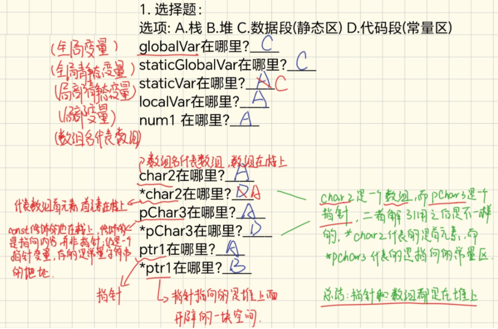 选项: A.栈 B.堆 C.数据段(静态区) D.代码段(常量区)