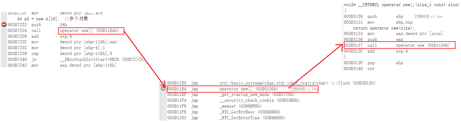 1.调用operator new[ ]函数,在operator new[ ]中实际调用那个operator new函数完成N个对象空间的申请