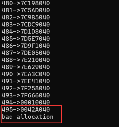 写一个程序,看一下堆上面到底能申请多少次的4MB空间的开辟: