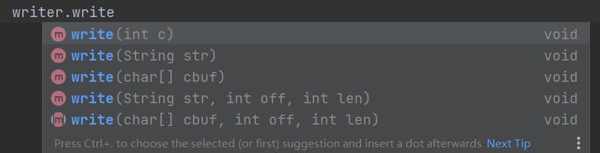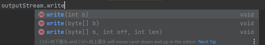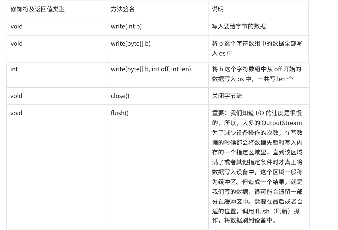 - **void(byte [ ] b)**一次写完整的字节数组,与读不同,写是一次性写完(所以不用使用while循环)