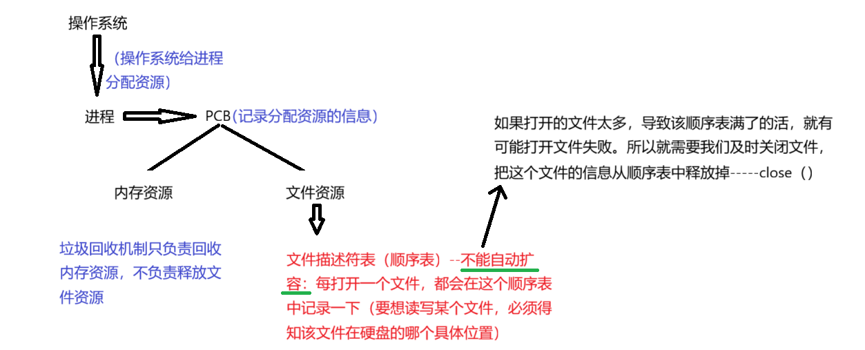 特殊情况下,我们不用不必关闭文件:如果在进程中读取文件完毕后,立即退出--原因---进程退出整个PCB都释放了(操作系统内核释放的)