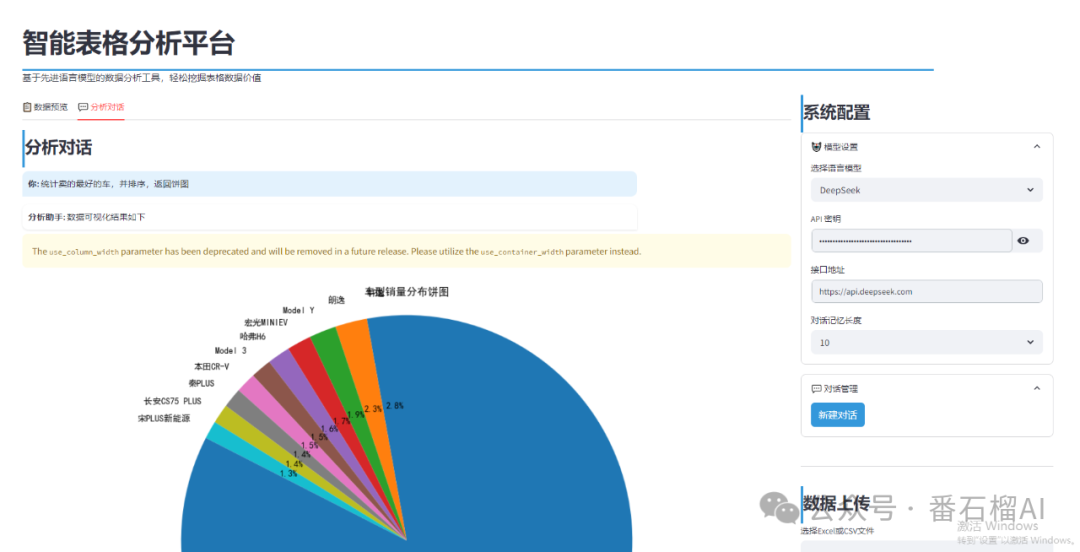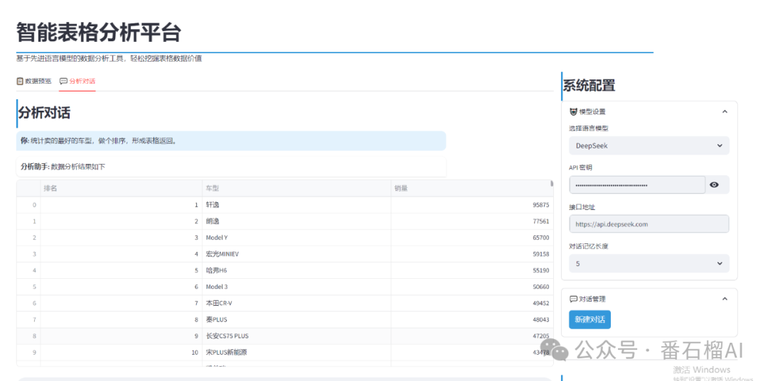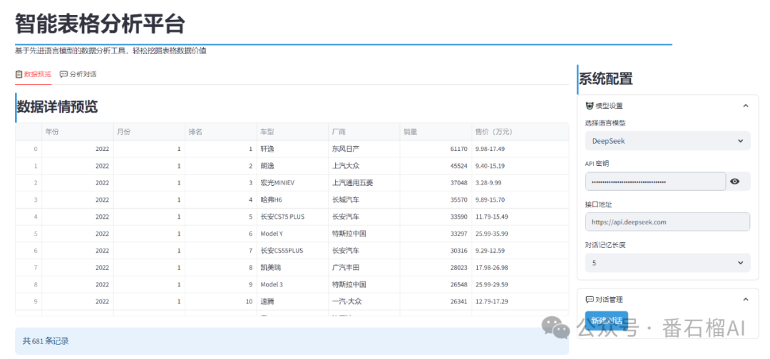 光说不练假把式,接下来通过几个实际使用过程中的案例截图,带大家直观感受 ChatExcel 的操作界面与分析结果效果。