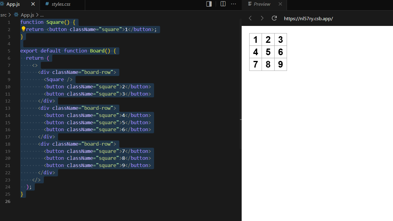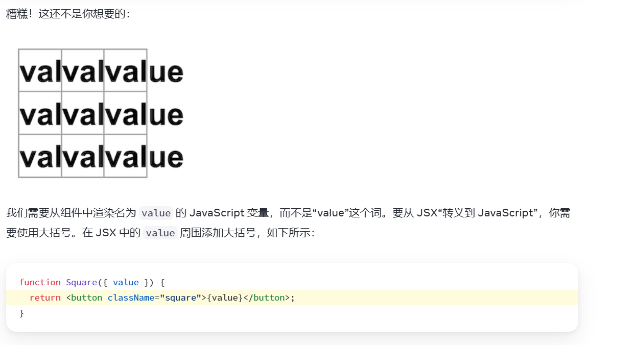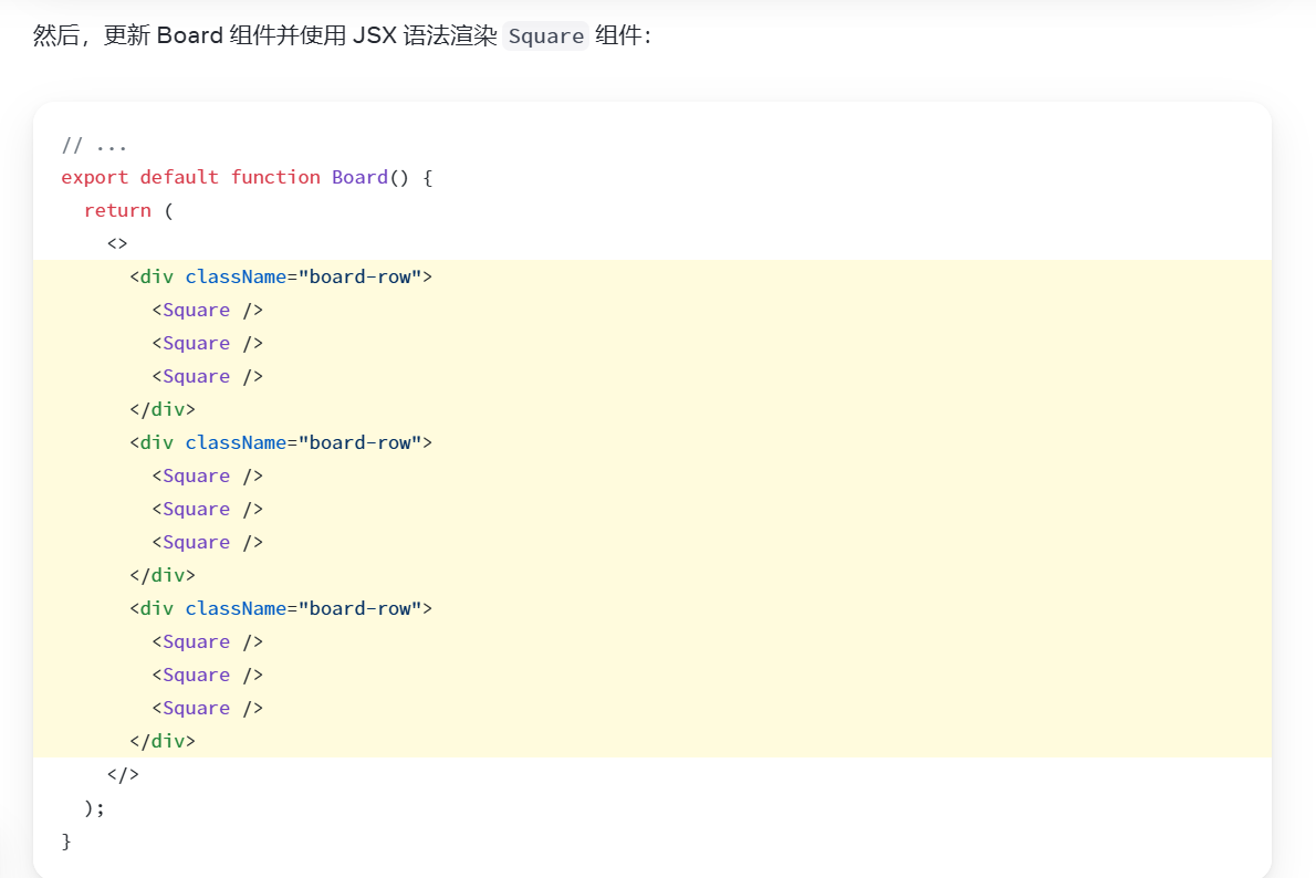 时,就相当于把上面定义的这个按钮「插入」到了当前位置,和直接写<button className="square">1</button>