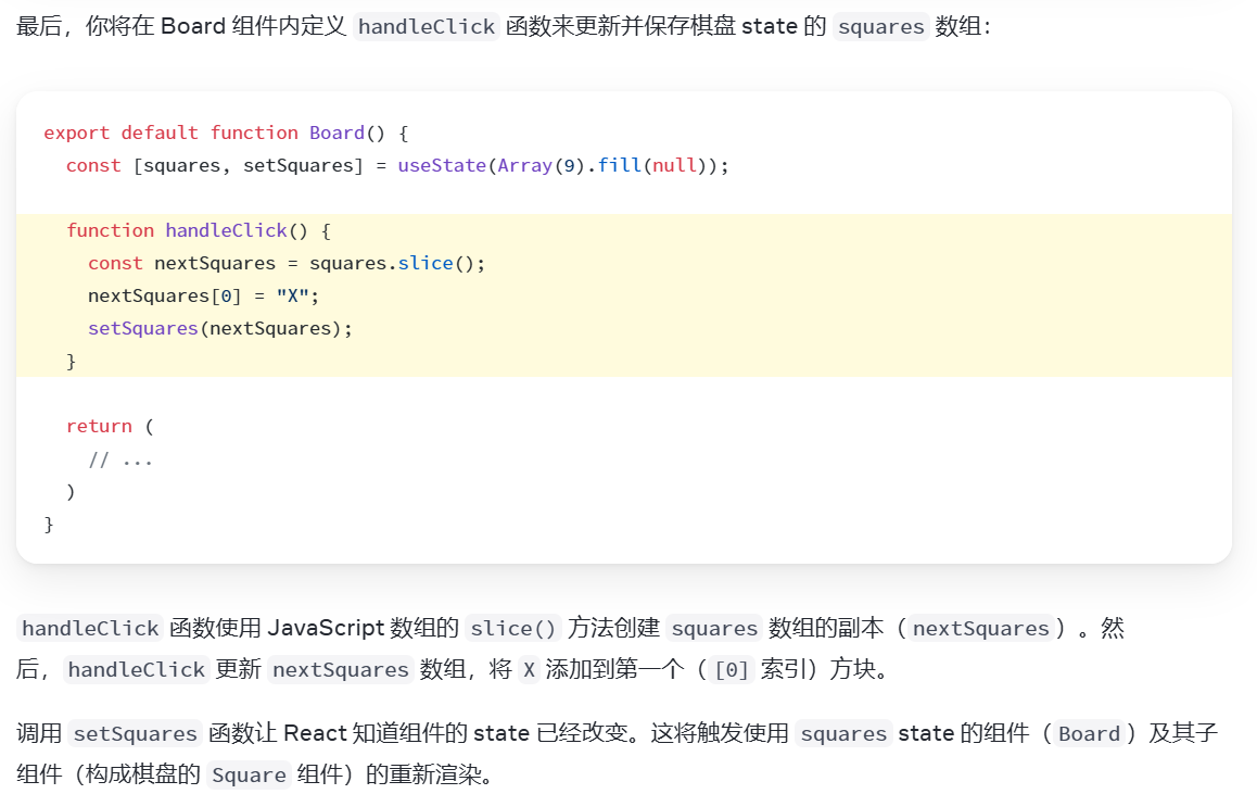 状态。这会让 React 知道状态发生了变化,从而触发Board