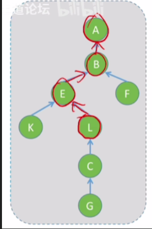 把L的查找路径上的这几个蓝色节点,全部都把它们挂到A这个根节点的下面