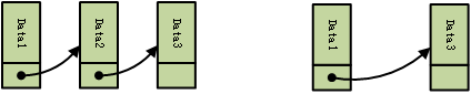 元素删除函数的作用是删除相应位置的元素节点,其删除方式与插入一样都是通过改变指针的指向来进行的。链表元素删除如图6所示,当要删除data2对应的节点时,只要将data1的next指针指向data3即可。值得注意的是,删除的节点的内存空间必须释放掉,不然会造成内存泄漏。将指针移动到不同的位置然后根据删除步骤就能删除链表中相应位置的元素。