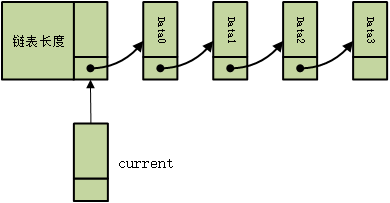 元素获取函数的作用是获取相应位置的元素。元素节点指针currnet用于表示当前位置元素,首先将他指向链表头节点(current = &list->head),执行后如4所示。从图中开看出,此时current->next就是第一个元素的,此后current每后移一次,current->next指向的元素将后移一位。根据position的值可以确定后移的次数,从可找到相应位置的元素。例如,要获取0位置的元素节点的数据值,此时current不需要后移,current->next的指向就是0位置元素节点。