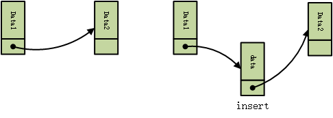 元素插入函数的作用是在相应位置数据。链表的插入和删除相对于顺序表而言要简单和灵活很多,链表元素的插入如图5所示。插入前如图5左侧所示,此时data1节点的next值指向data2节点。若要在data1和data2之间插入元素data,只需要先将data的next指向data2,然后将data1的next指向data,即可实现元素的插入。