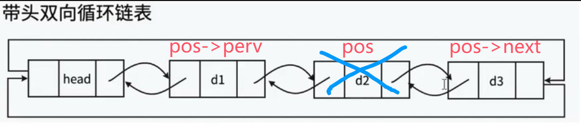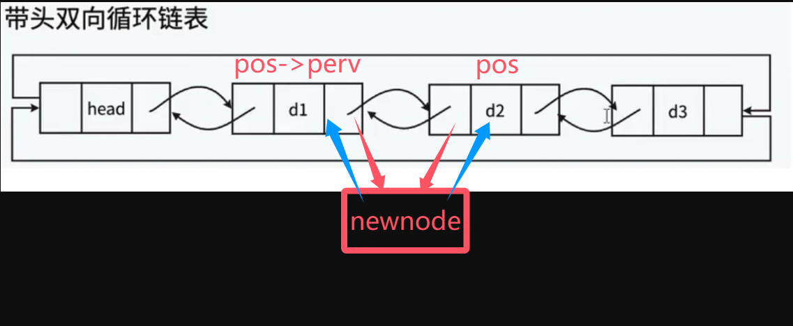 插入过程要先让新节点指向pos节点和pos前一个节点(pos->perv),再让它们指向新节点。