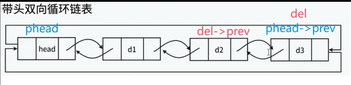 头删链表必须有效而且不能为空,尾删的过程要让原链表的第一个有节点的后一个节点(del->next)指向哨兵位,再让哨兵位指向它。