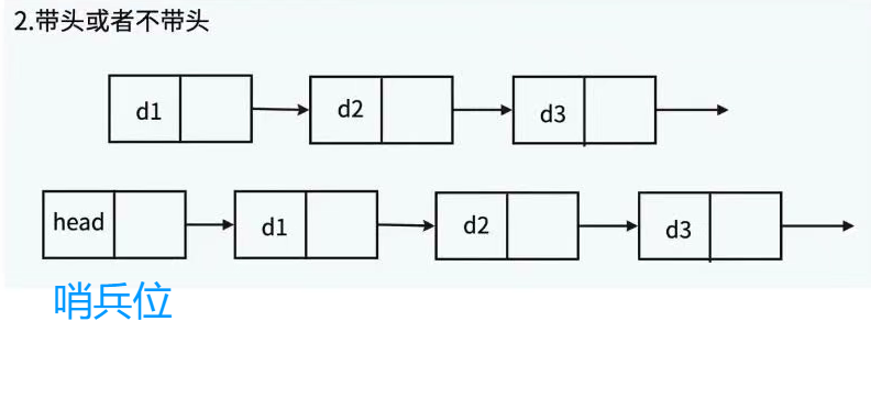 带头:指的是链表中有哨兵位的节点,该哨兵位就的头节点(在下面单链表的实现中我们提到的头节点实际上是第一个有效节点,这样错误的称呼为了方便理解)