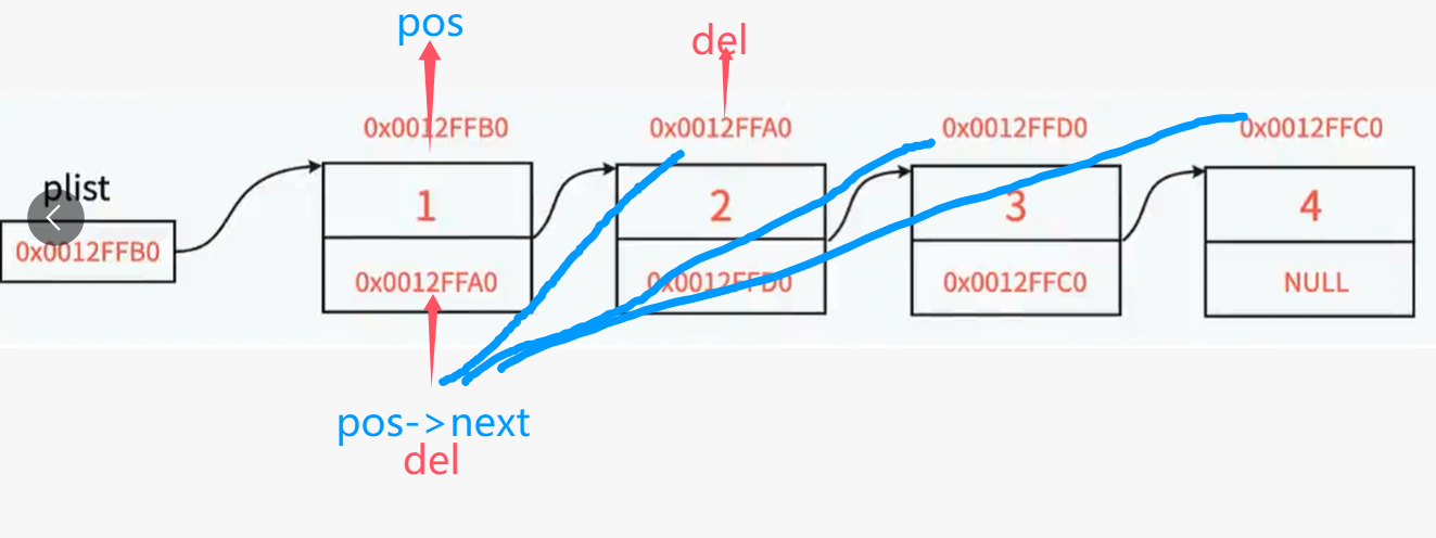 其实我们可以注意到在5.9删除pos节点中我们改变了pos的地址,把其置为了NULL,所以理论上应该用二级指针才对。这里还是用的一级指针,一方面是这里pos不影响后续代码,还有一方面是为了保持接口一致性。