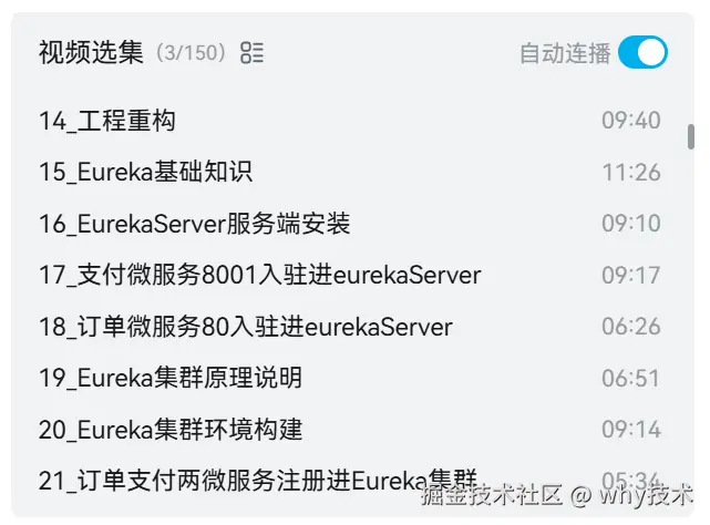 比如讲到 Eureka 的时候,基本上都是在讲怎么使用,代码应该怎么去写,写完之后怎么跑起来。