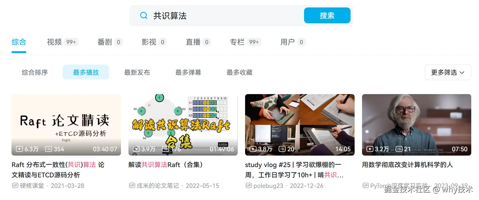 于是我在 B 站大学上搜索了"共识算法"这个词:
