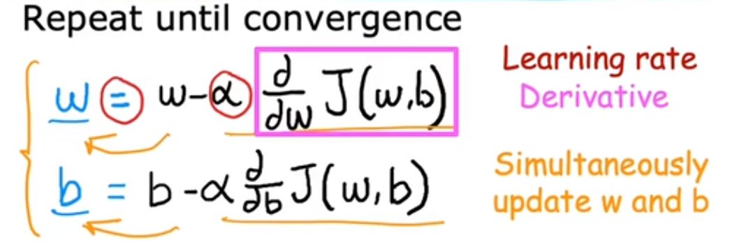 称为学习率,其是就是求偏导,下文会对其进行详述。梯度下降原理其是就是不断更新w,b直到收敛。