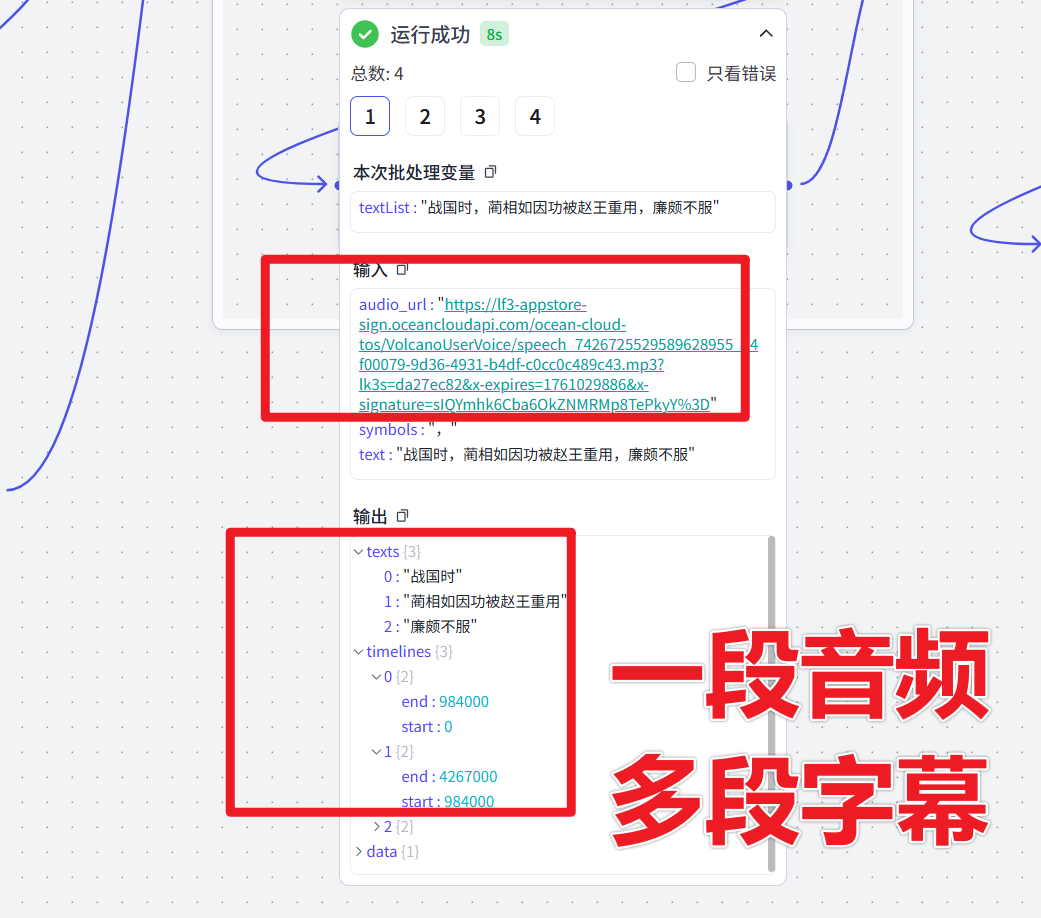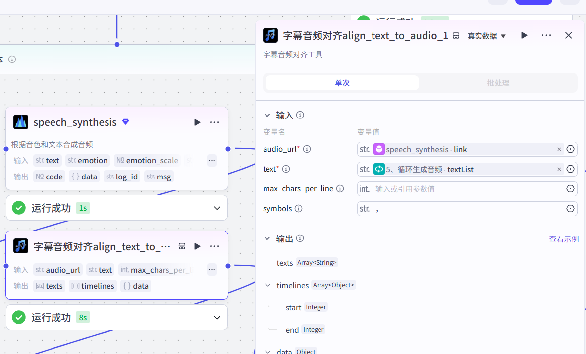 - 语音对齐字幕:再利用语音识别(ASR)或对齐算法,把生成的音频和原字幕文本进行"自动匹配"。AI会分析声音中每个字出现的时间点,从而重新计算出字幕的时间线。