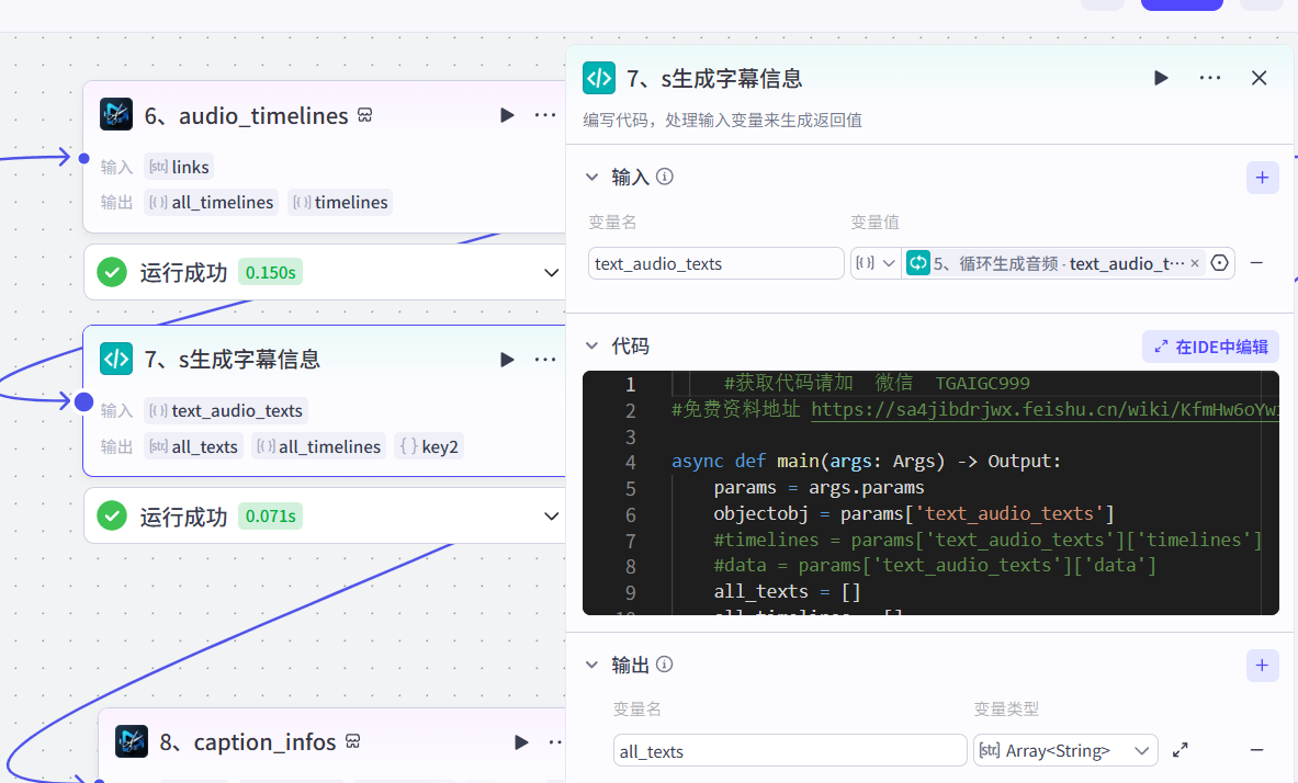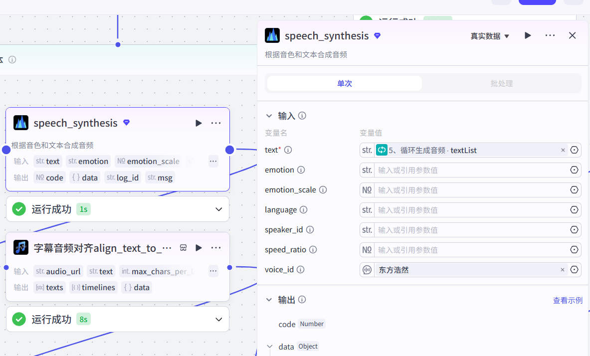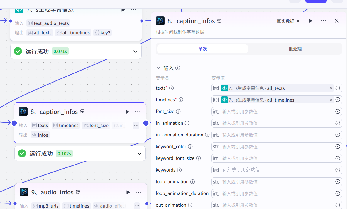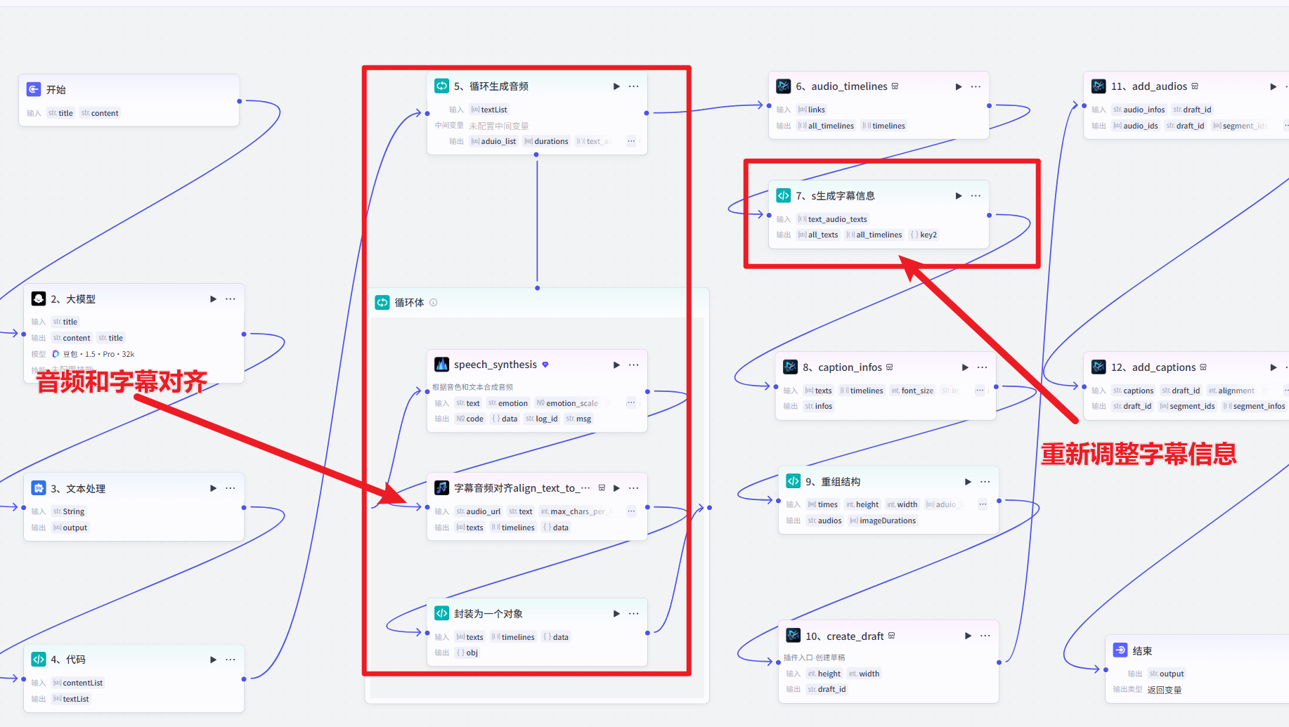 - 然后让语音合成模型(TTS)根据每一句字幕生成对应的音频;