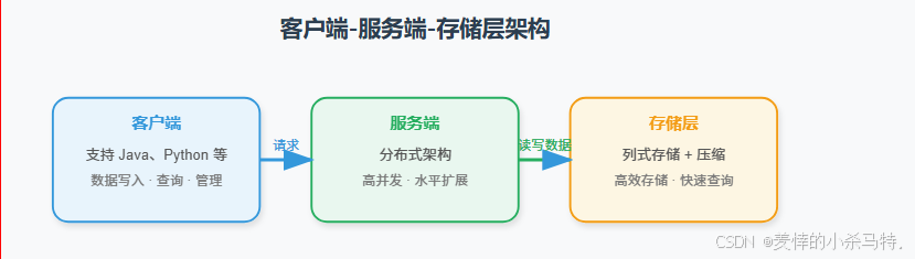 - 服务端:负责处理客户端的请求,包括数据的写入、查询、存储管理等功能。服务端采用了分布式架构,能够实现高并发处理和水平扩展。
