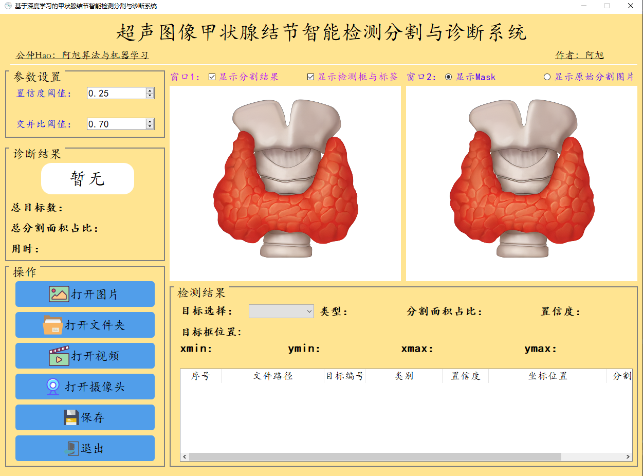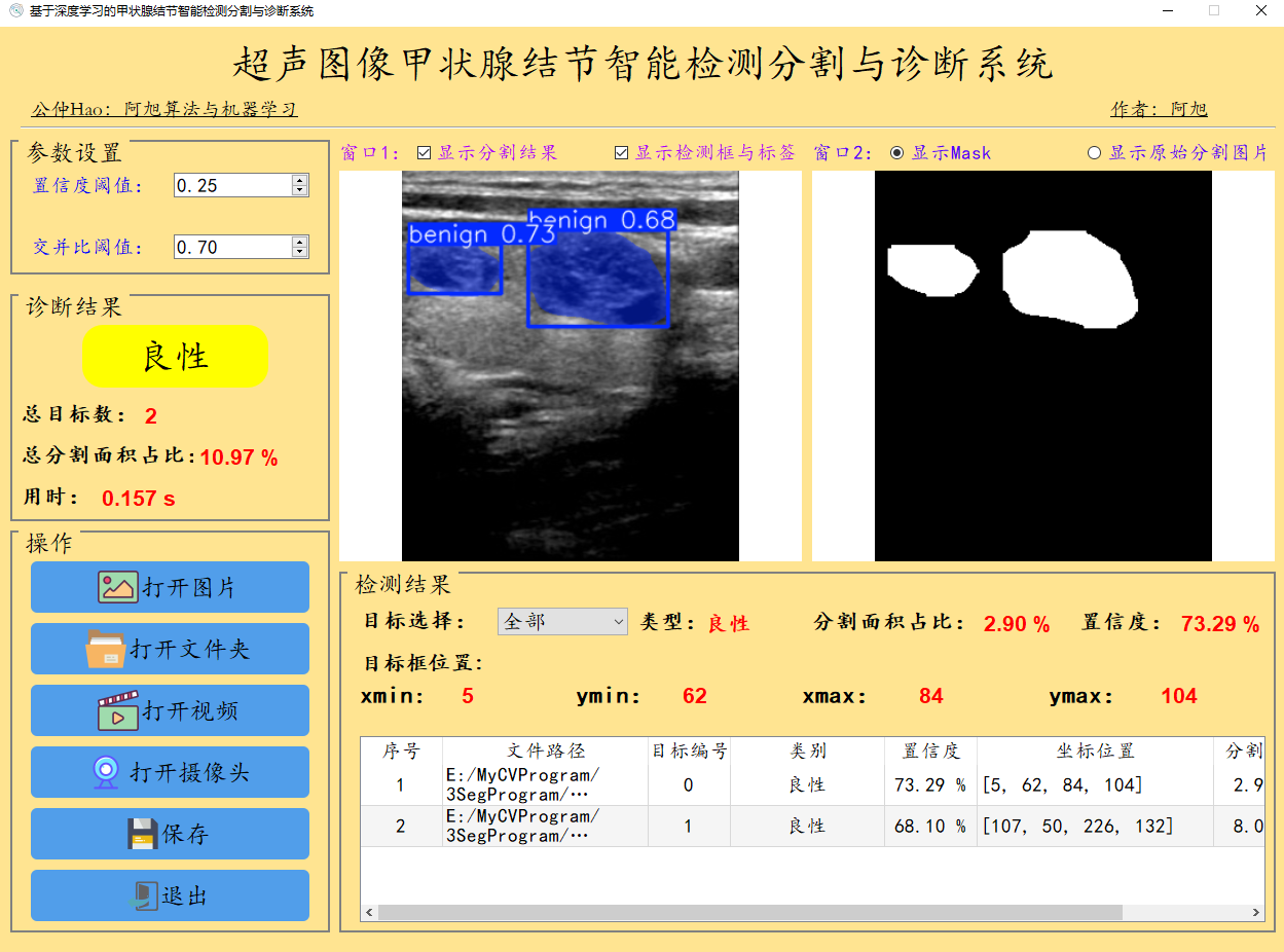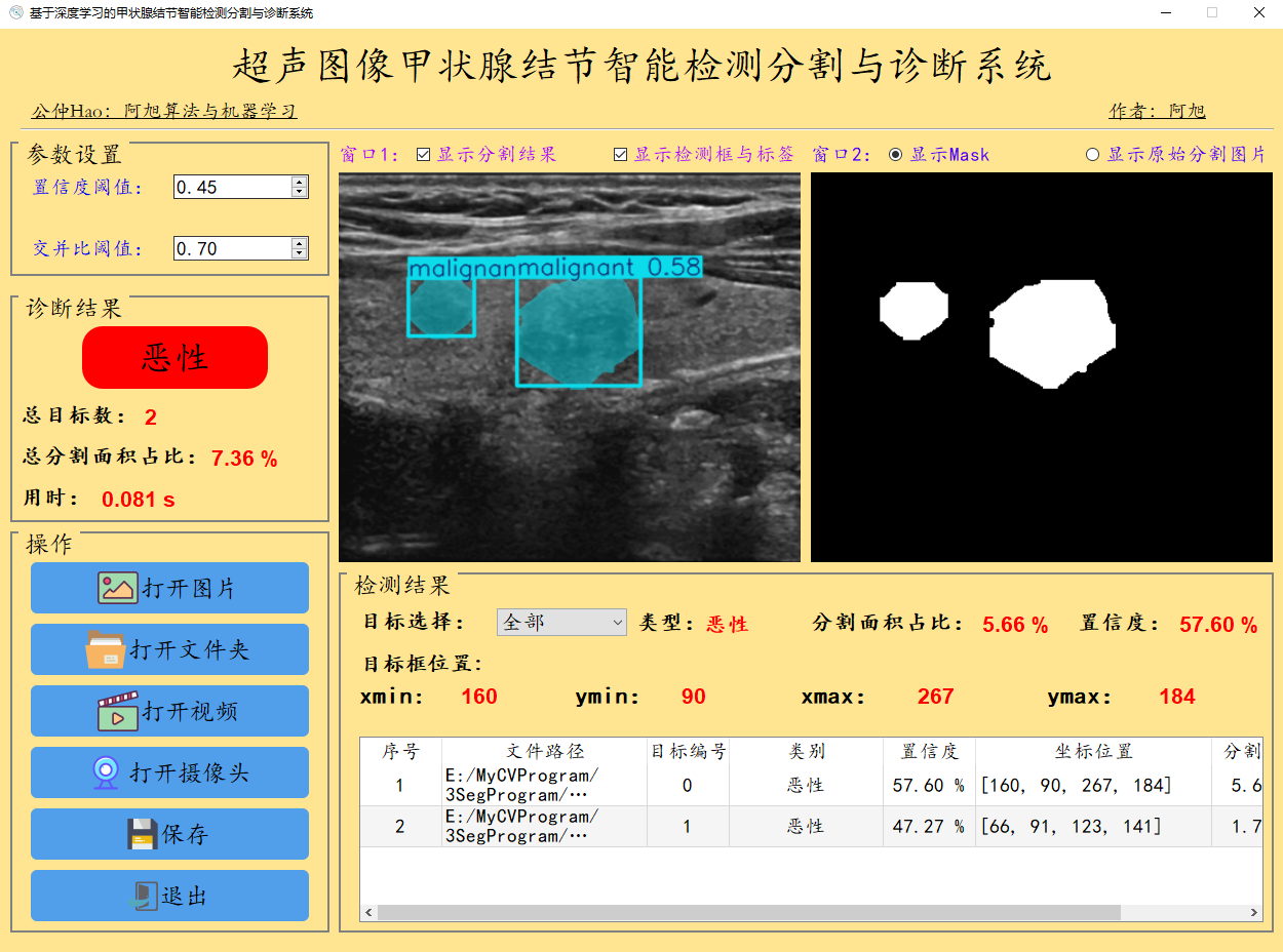 。最终基于此模型开发了一款带UI界面的甲状腺结节智能检测分割与诊断系统