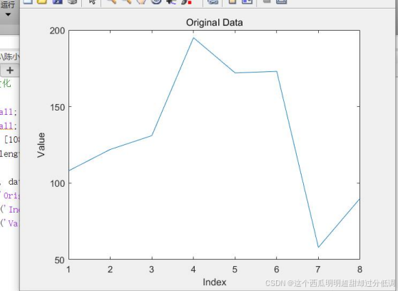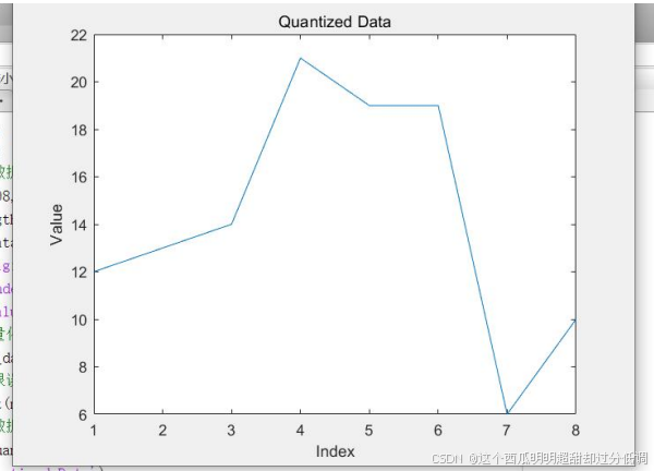 考虑一列数据{108,122,131,195,172,173,58,90}。若用 4 比特精度来均匀量化它,计 算量化后数据的均方根误差,给出量化前后的曲线图(plot 函数)。