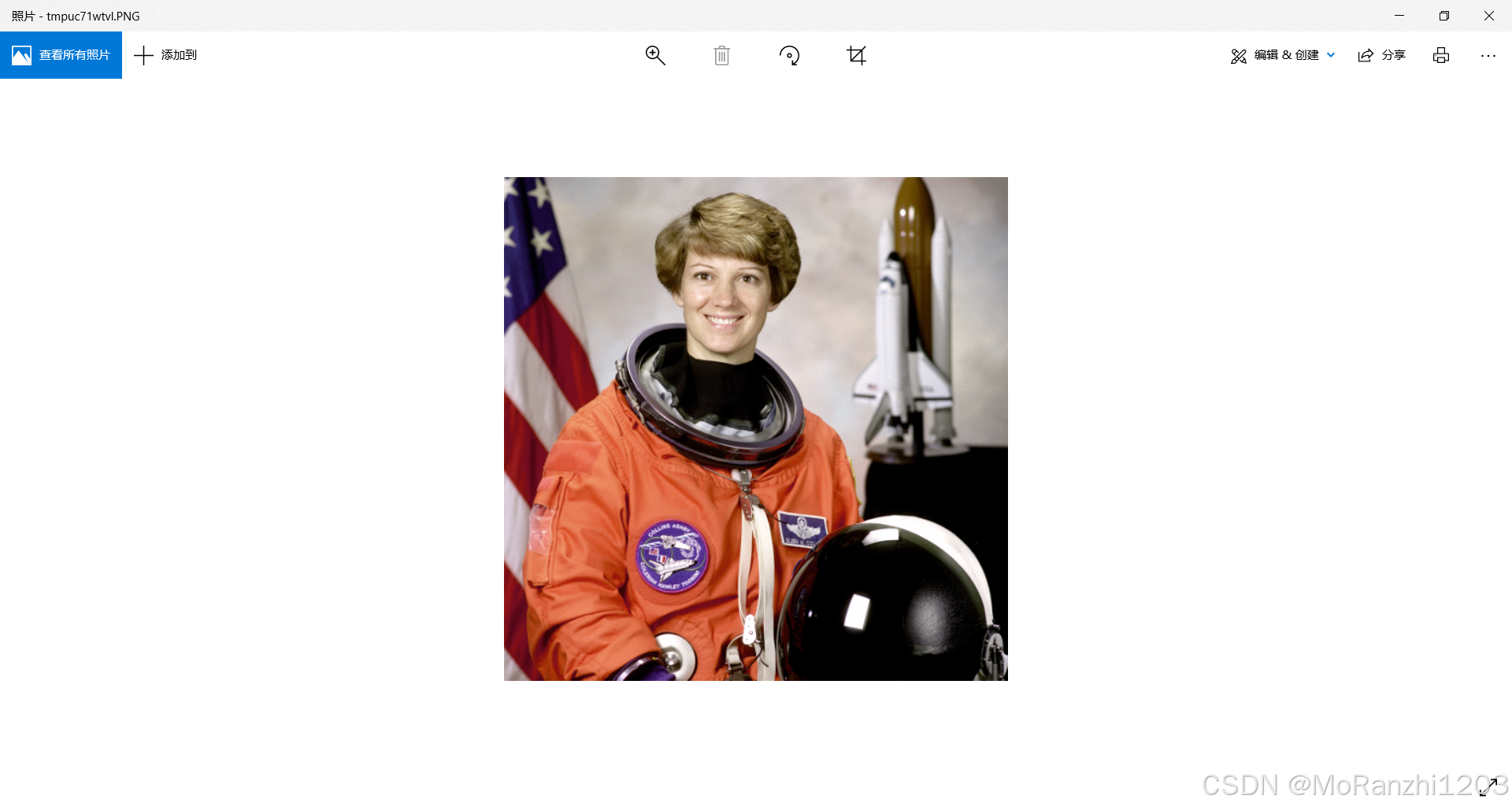 你将看到一张清晰的宇航员照片(RGB 彩色),适合后续图像操作实验。