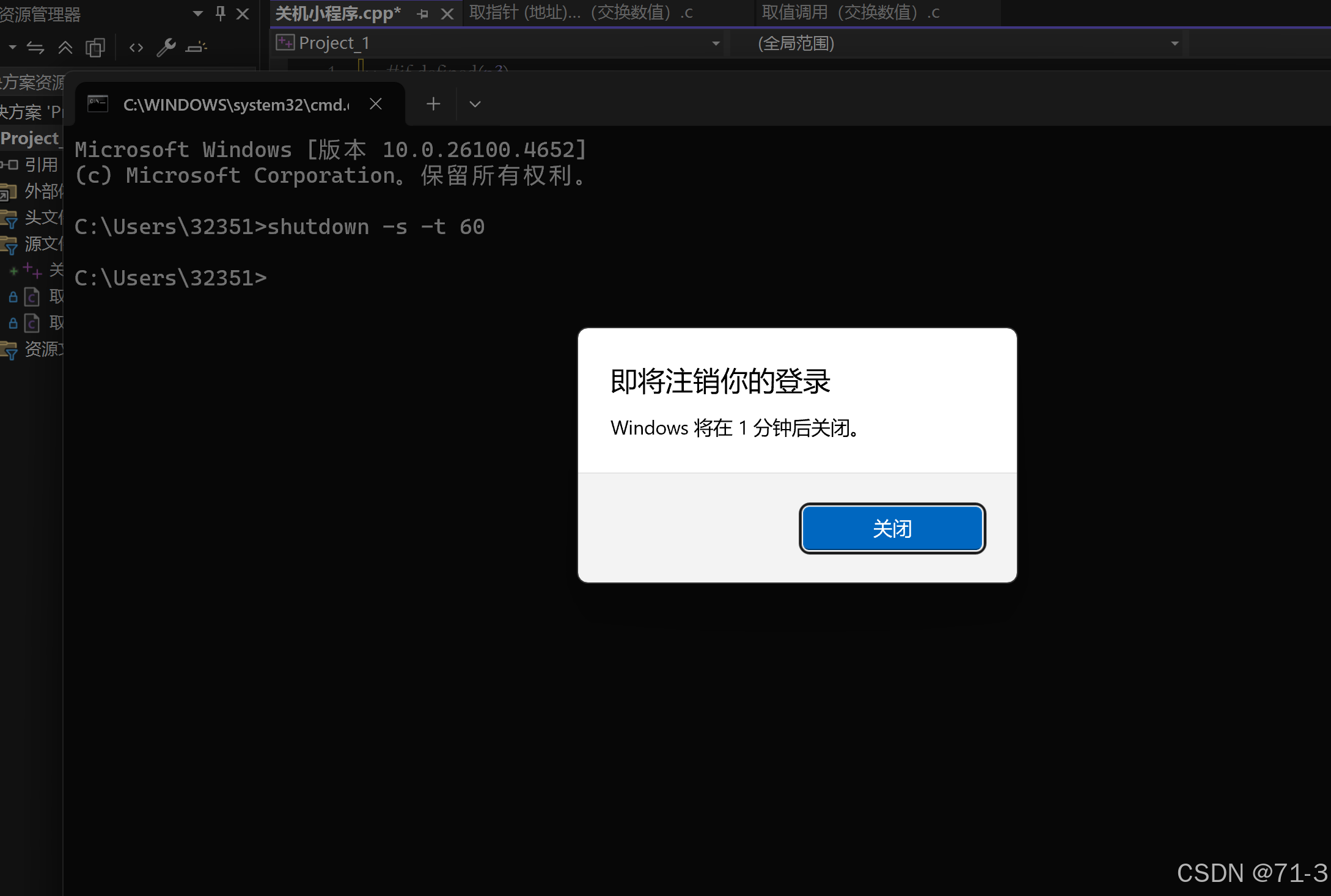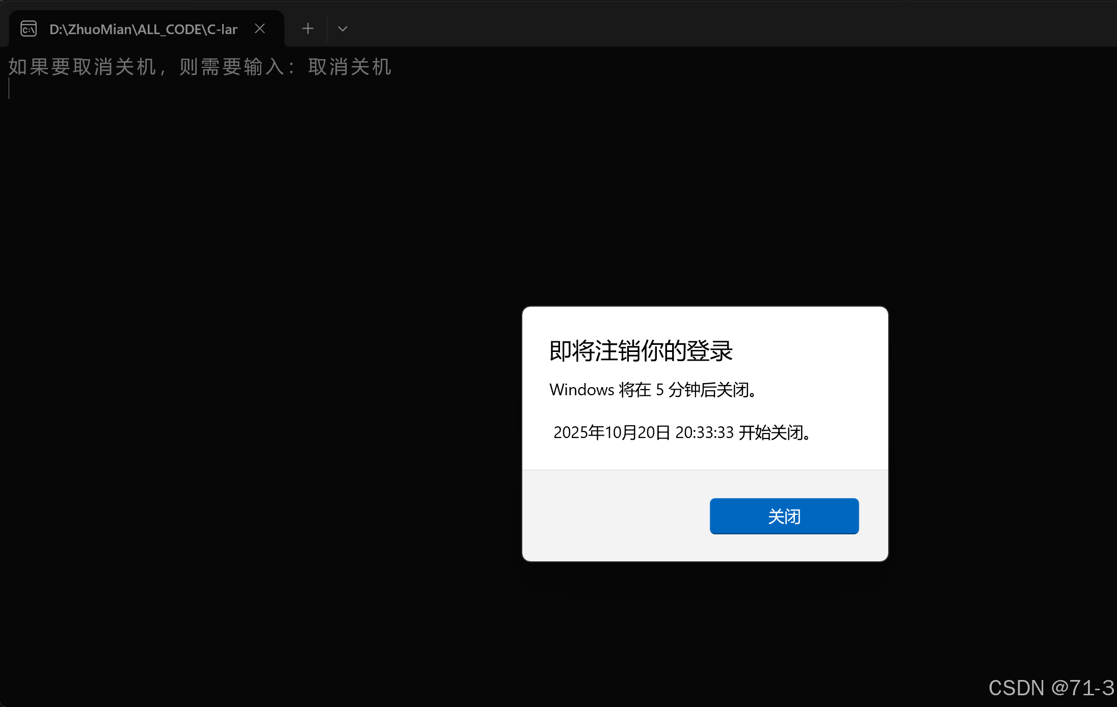 - 权限:执行这些命令通常需要管理员权限。如果你的 C 程序没有以管理员身份运行,system("shutdown ...") 可能会失败。
